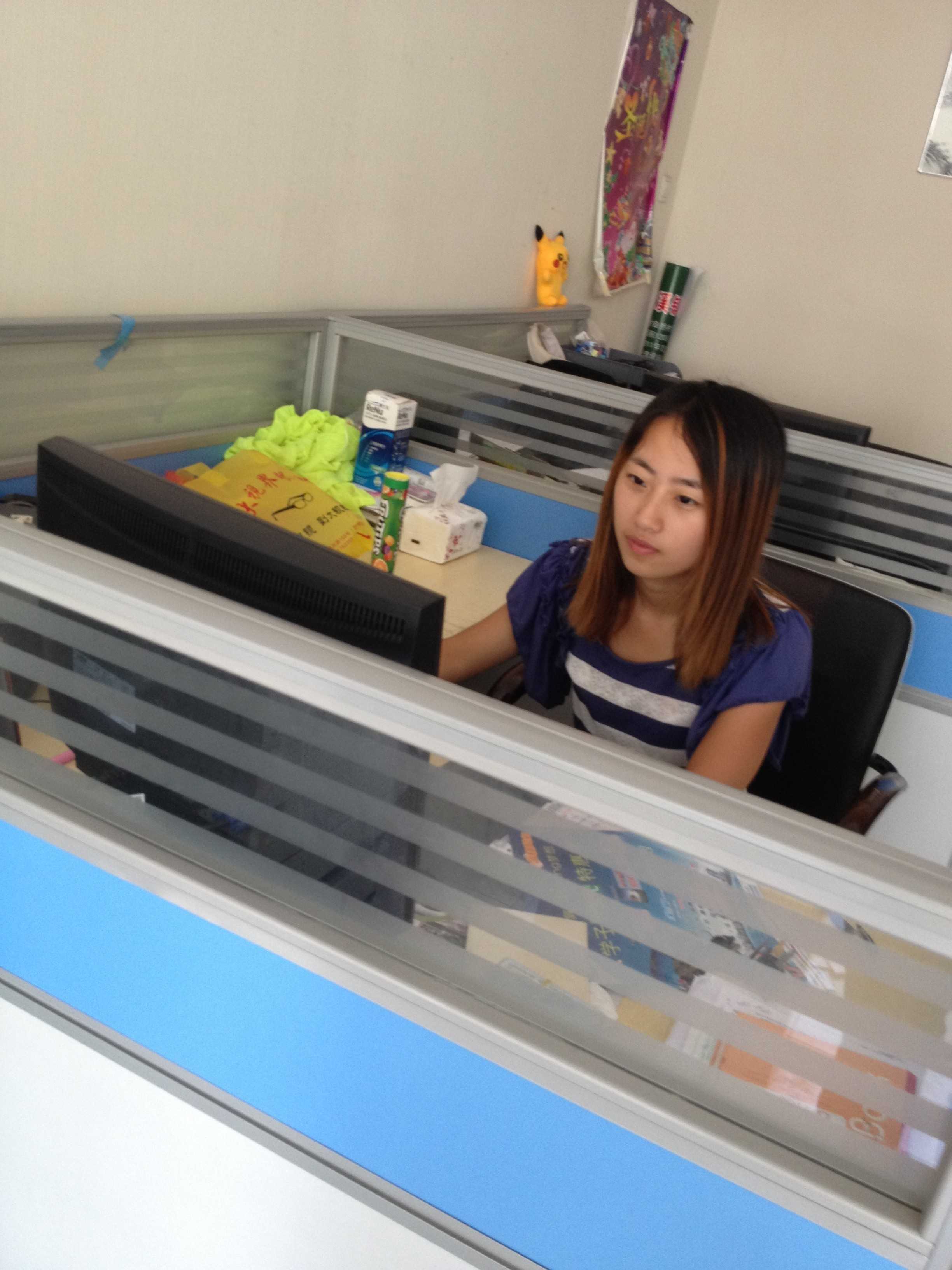 袁雪萍,现工作于南京字游图文广告有限公司从事文员的工作,负责复印,打印,整理资料,做PPT,对文字格式的排版(该生正在对资料做一个整理)。工作中,处处以一名优秀的文员的标准来严格要求自己,认真做好自己份内的事,团结同事,得到老板和同事的一致肯定。