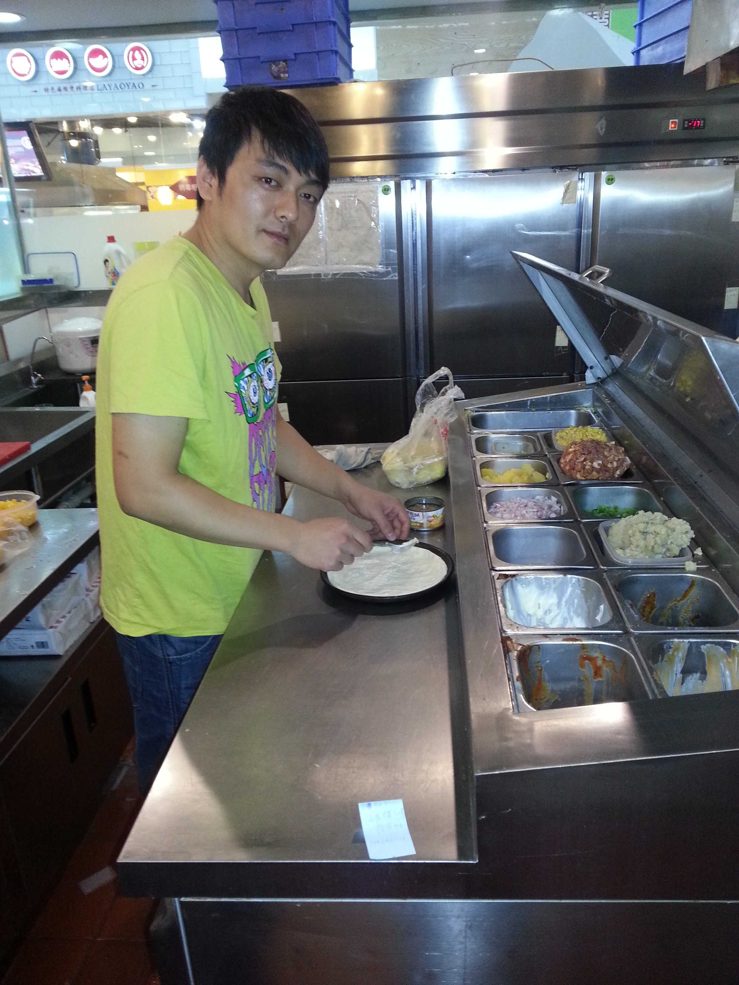 张恒,现在工作于乐凯萨食品有限公司,负责外卖的工作(图为正在做披萨的照片)。工作中为成为一名管理者而努力,对披萨的口感认真负责,得到领导的肯定与信任。