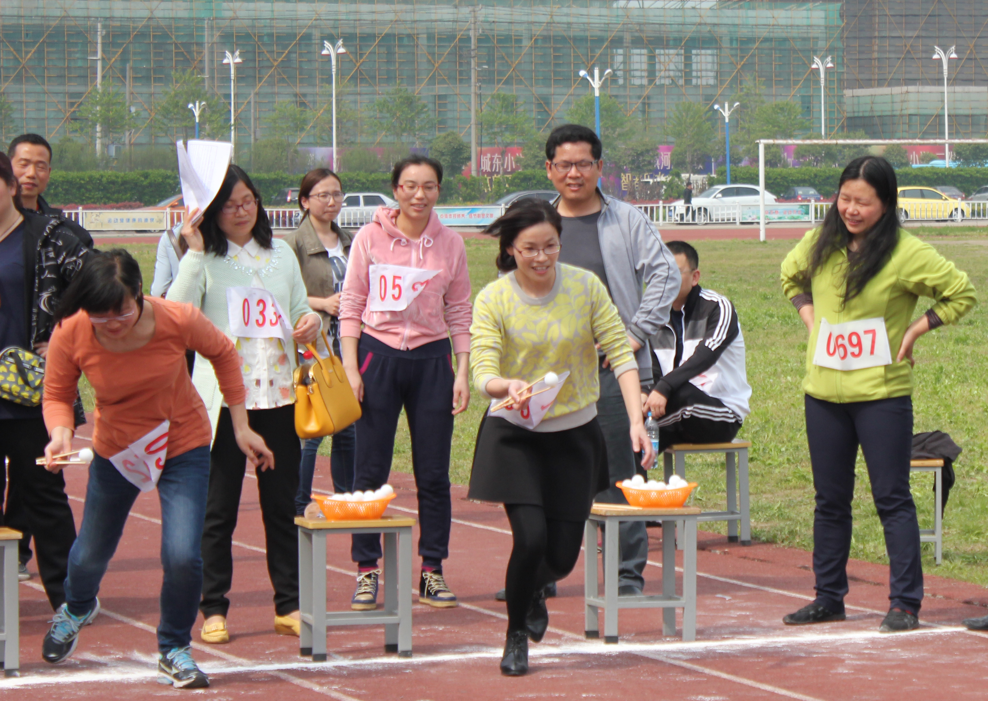 参与的项目有50米提灭火器跑、30米慢车、夹乒乓球、赶球跑、袋鼠跳、两人背夹球跑、四人飞镖接力和五人撕名牌等项目。