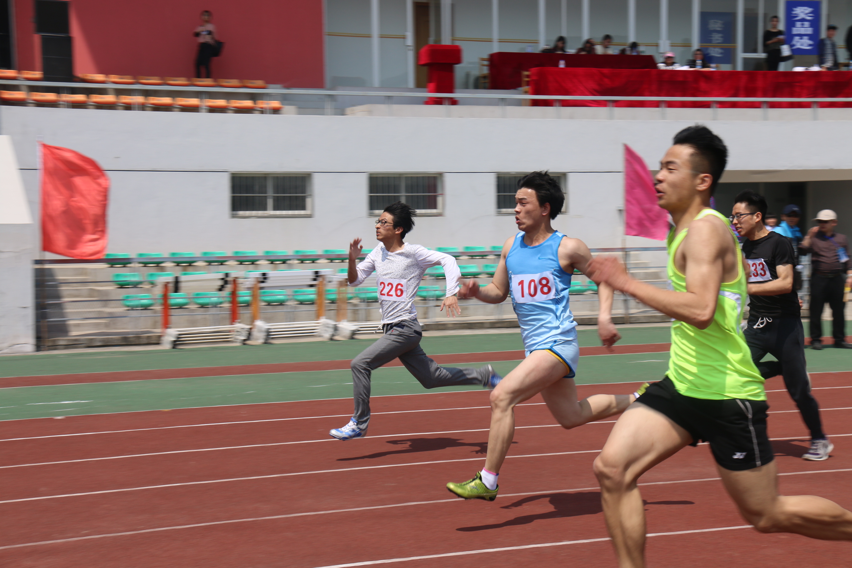 呼吸慢慢凝重,他们弯下腰,眼神专注,只听得一声枪响,百米跑道上,14计应的张毅同学身影如离弦的箭般飞奔而去,最终取得100米第一名,200米第二名的优异成绩;脚步越来越迟缓,女子3000米、1500米跑道上,13计应的葛志敏同学凭借顽强的毅力坚持着,坚持着,最终取得第一名的优异成绩。青春飞扬,梦想激昂,愿我们的体育健儿们明年再创辉煌!