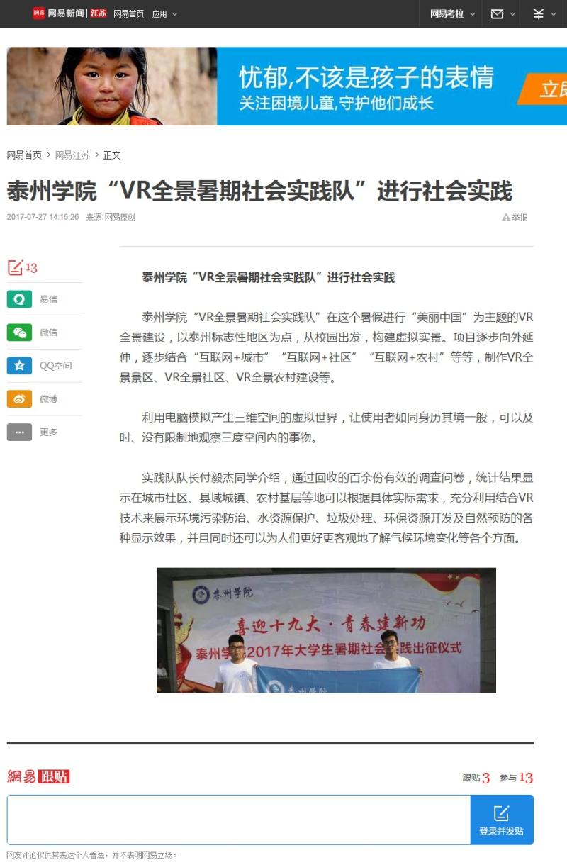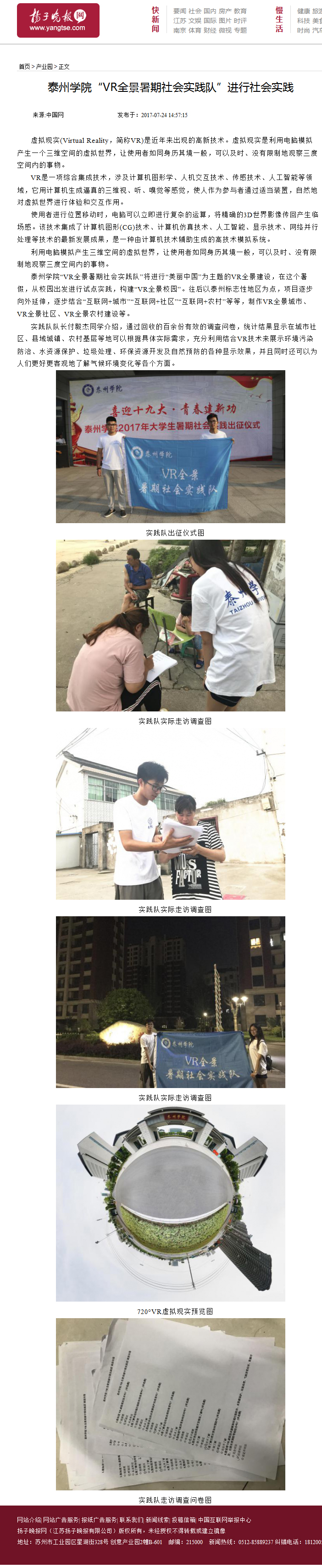 必威西汉姆联“VR全景暑期社会实践队”将进行“美丽中国”为主题的VR全景建设,在这个暑假,从校园出发进行试点实践,构建“VR全景校园”。往后以泰州标志性地区为点,项目逐步向外延伸,逐步结合“互联网+城市”“互联网+社区”“互联网+农村”等等,制作VR全景城市、VR全景社区、VR全景农村建设等。