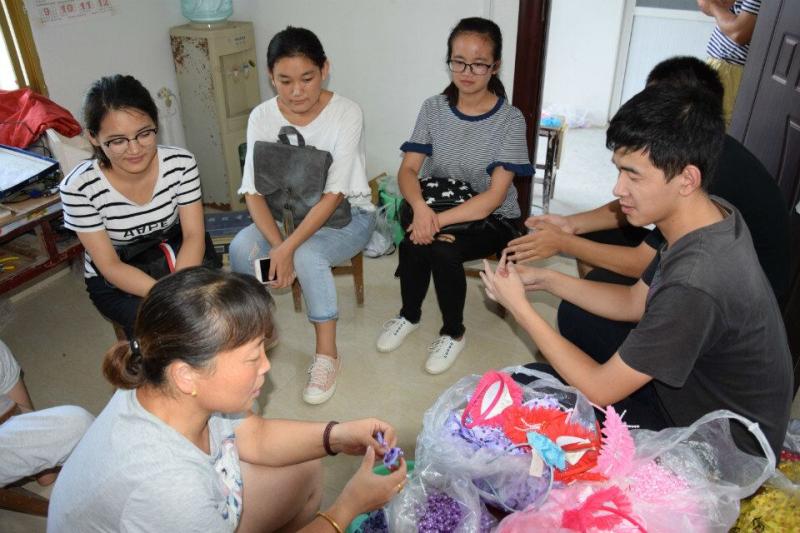 下午,全体成员来到了睢宁县李集镇,先听取了李集镇党委副书记杨方介绍了李集镇的基本情况,之后大家前往饰品加工厂户家中进行走访。通过走访,大家了解到目前李集的饰品以代加工为主,主要是为浙江义务小商品市场供货,今年镇里也在兴建饰品电商产业园,争取从传统的代加工模式转变为设计、生产、销售为一体的全产业链模式。队员们深切感受到,在家乡的发展过程中,我们老员工大有可为。
