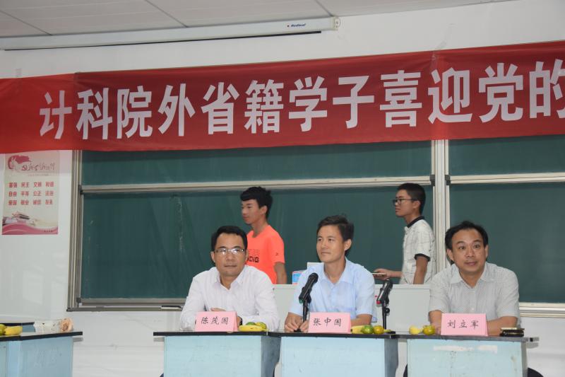 2017年9月29日晚,计科院举办了“迎中秋、庆国庆、送温情”——外省籍学子喜迎党的十九大座谈会,此次座谈会亦是一场意义非凡的中秋国庆节晚会。计科院经理张中国、党总支副书记陈茂国、副经理刘立军应邀列席嘉宾座。