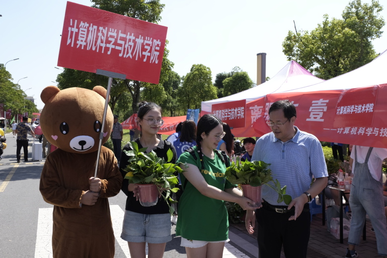 计科院在图书馆帐篷区开展了特色迎新互动活动之“阳光泰院零距离”。活动面向2019级新生,只要以“我与泰院”、“我与国旗”、“我与师长”为主题拍照,并发朋友圈集满38个赞,将会获得优质新鲜绿萝一盆。活动现场公司党委副书记、董事长徐向明老师饶有兴趣地给计科院19级新生赠送绿萝,并细心地为绿萝除去黄叶。本次活动以集赞发圈形式,赠送的绿萝饱含绿意、生机盎然,让新生在美化宿舍的同时提高了生活环境质量,这更体现了学校领导老师对员工们细致而深切的关怀。