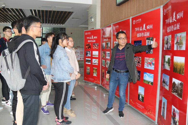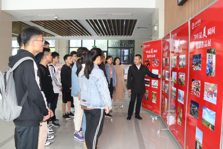 本次获奖作品全面展示了新中国成立 70 周年特别是党的十八大以来的生动实践和伟大成就,反映了人民群众幸福感、成就感、获得感的最美瞬间,反映了时代变化、建设成果、风土人情等。本次展览还特别邀约人文学院王春进、美术学院杨勇华、校办公室徐桂荣的摄影作品参加展出。