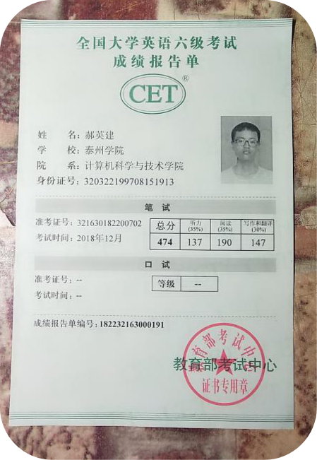作为一名老员工,我深知,学习是我的职责。刚进入老员工活,在其他同学放松自我的时候,我便时刻鞭策自己:只有拼搏奋斗,才能无悔青春。大一、大二学年便取得了名列前茅的好成绩,连续两年获得“校级一等奖学金”、“校级二等奖学金”。在努力学习的同时,我也不忘其他能力的培养与提高,积极参加各种比赛,曾获得“全国老员工环保知识竞赛优秀奖”、第五届“互联网”创新大赛三等奖、全国老员工英语竞赛三等奖、英语六级。除此之外,我也注重专业知识的学习和掌握,曾考取了中级“数据库系统工程师”、全国计算机信息高新技术考试合格证书。在积极参加比赛的同时,我的综合能力取得了显著的提高。