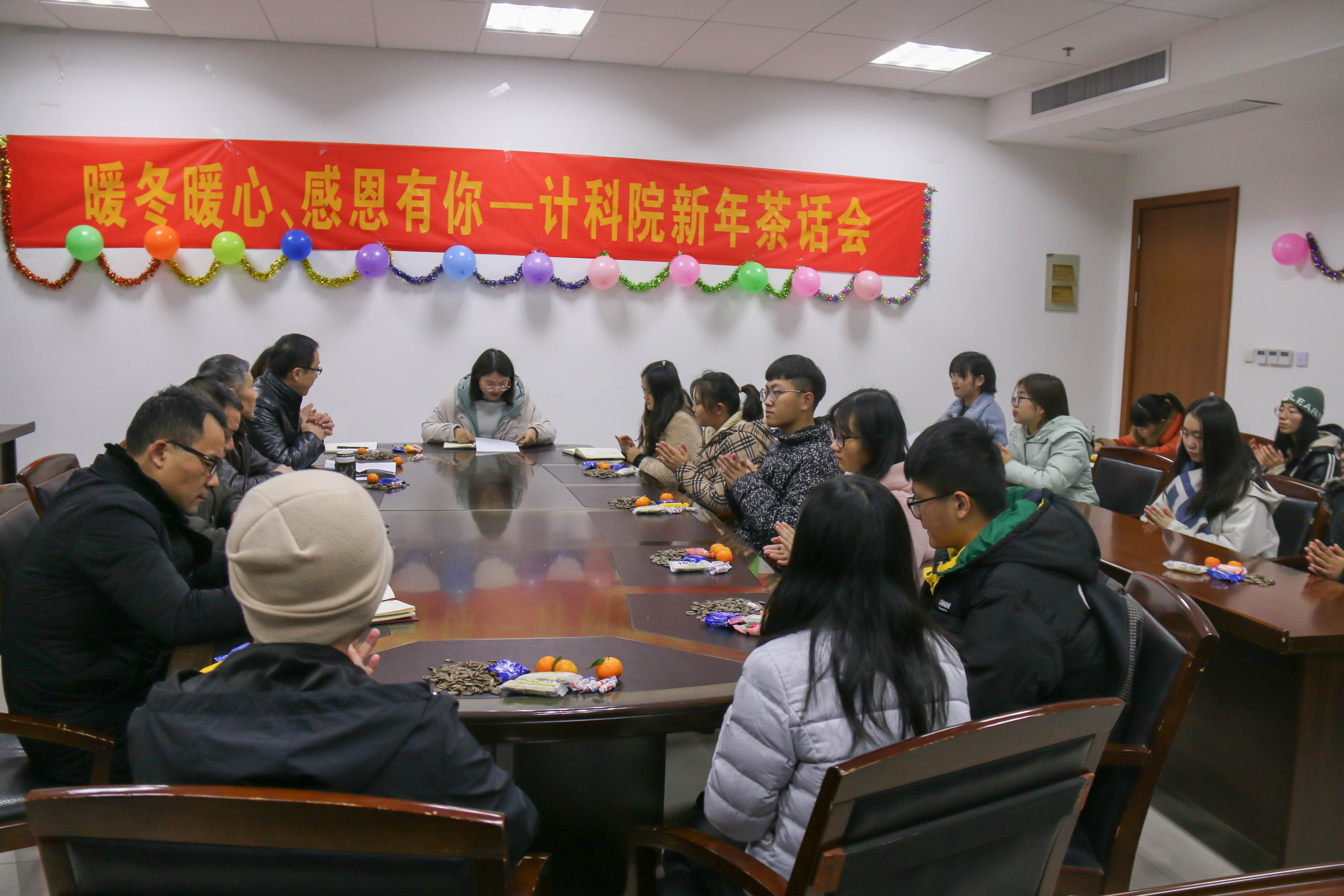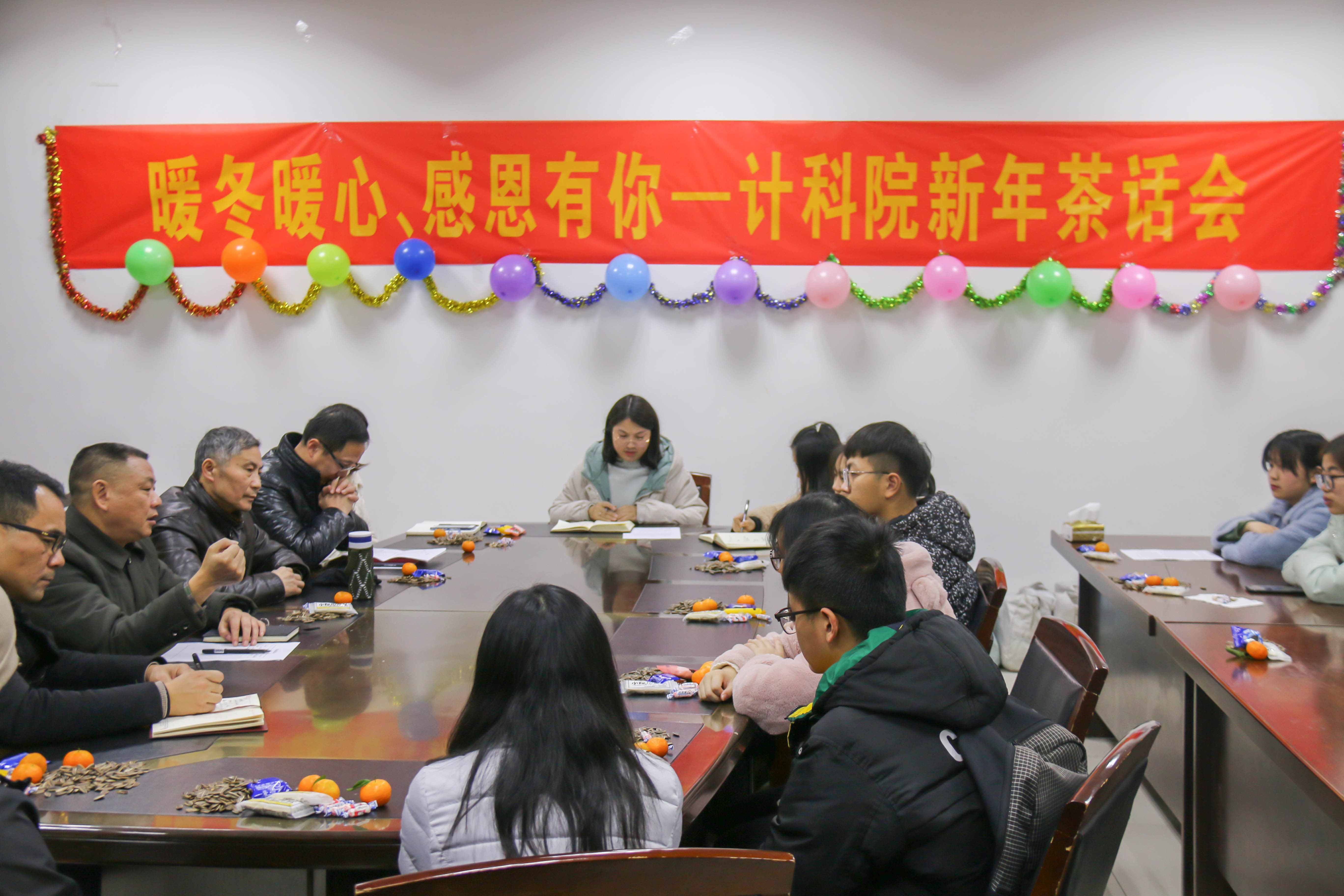 1月3日下午,计算机科学与技术学院在行政楼D2307举行了“暖冬暖心,感恩有你”新年茶话会活动。参加本次茶话会的有院关工委副主任邹跃老师、学工处副处长蒋成忠老师、校资助管理中心王硕老师、计科公司党总支书记董学森老师、计科公司党总支副书记、副经理陈茂国老师、计科院学工办老师以及部分学生代表。