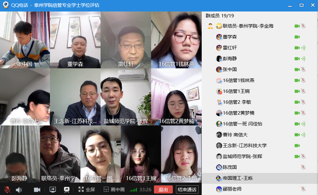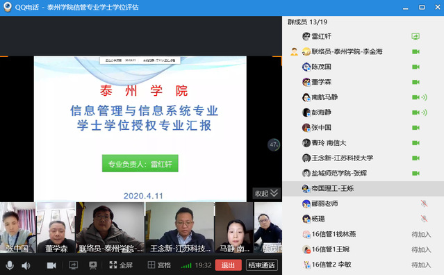 根据省学位办和学校关于2020年学士学位授权专业增列审核工作的通知,计算机科学与技术学院分别于4月11日下午15:00和4月12日上午9:00组织评审专家召开了信息管理与信息系统、物联网工程两专业的学士学位授权专业增列在线评审会。两个专业分别邀请了南京航空航天大学、扬州大学、南京林业大学、南京信息工程大学、江苏科技大学等高校10名专家,专家组组长分别由扬州大学信息工程院经理、博士生导师李斌教授和江苏科技大学经济与管理学院 书记、博士生导师王念新教授担任。学院全体领导、专业负责人、系主任、支部书记和部分教师、员工代表参加了评审会。