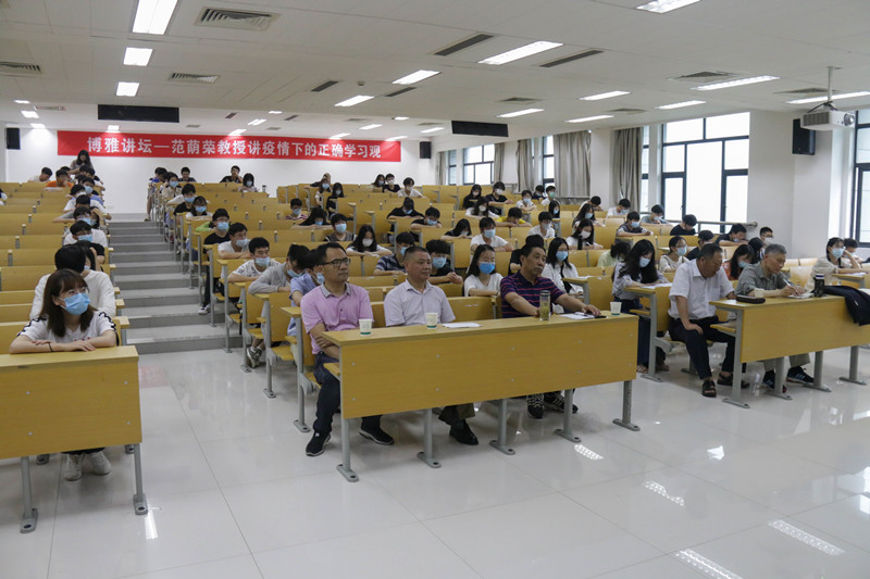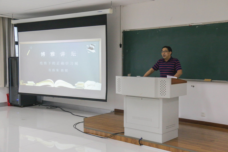 范荫荣作为主讲嘉宾围绕“疫情下的正确学习观”为计科院同学开讲“不忘初心,勤奋读书”主题讲座。他与在座的同学分享了自己的读书学习经历,读书是其工作的初心和热爱源泉,学习要做到真情妙悟铸文章。他由浅入深、借古思今,以渊博的知识娓娓道来,为同学们的学习观、人生观做出了重要的引导,并以“爱语好文真情痴,日间读写夜间思。韶华渐远余清朴,芳草青青处处诗”作为讲座的收尾,倡导同学们要认真学习、诚信考试,多读书,读好书。