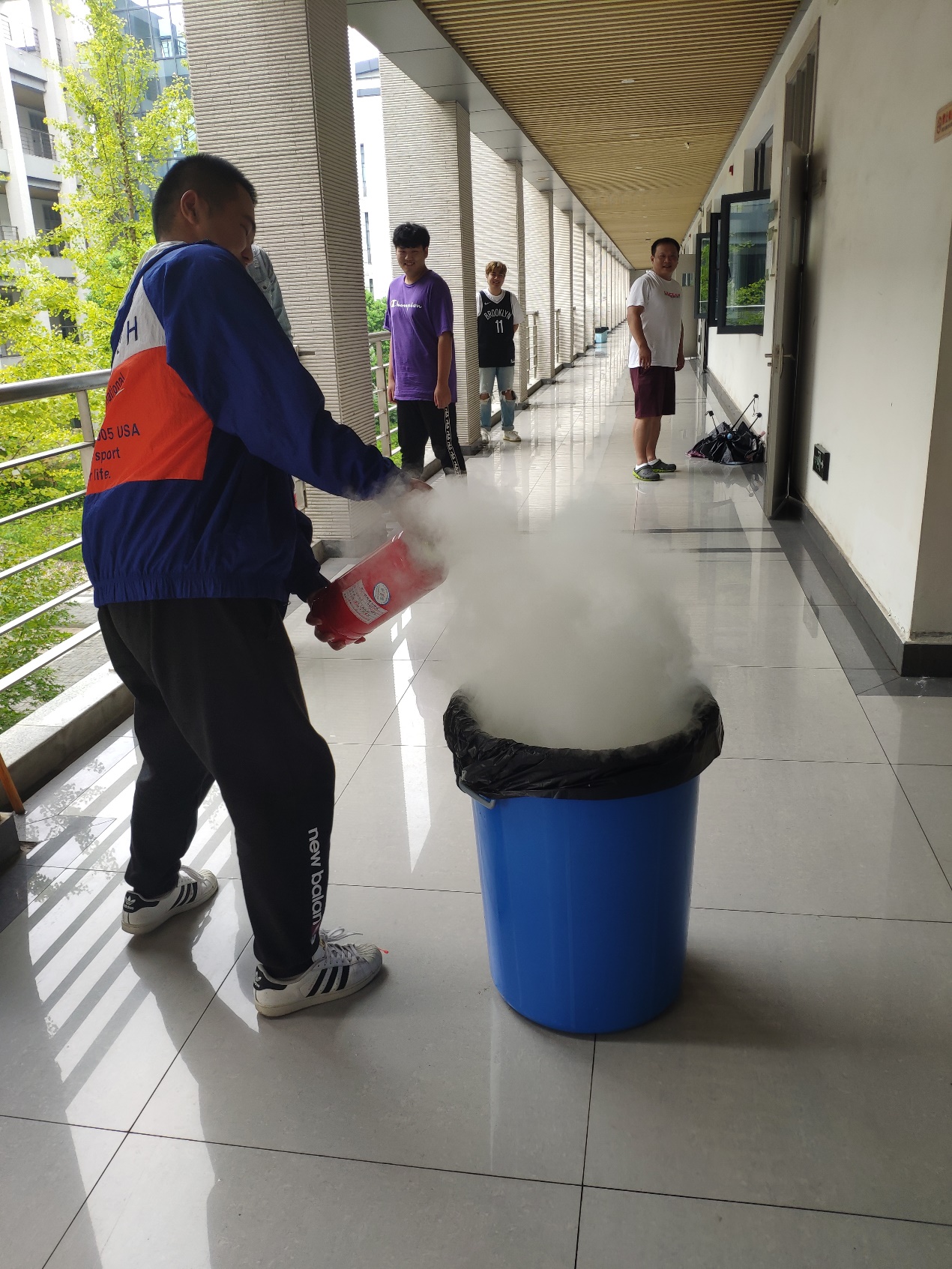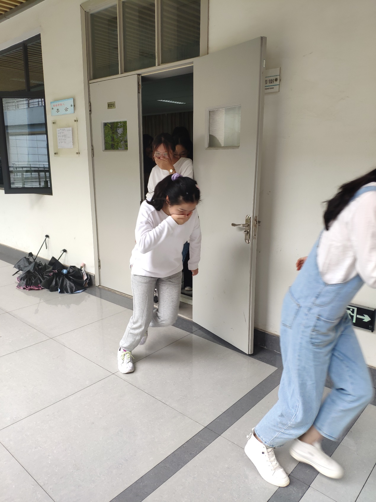 演练前,所有员工有序地进实验室,在指定位置集结待命。演练指令下达后,演练组师生、实验人员按照既定方案,快速有序通过应急疏散通道紧急撤出。最后,参加学习的师生和消防器材装备有了一次“零距离”的接触,学院提供了消防装备的体验和实践操作。