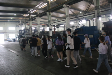 随后,队伍走访了江苏飞船股份有限公司,车间负责人带领同学们参观了生产车间,向同学们介绍了公司的生产作业方式。