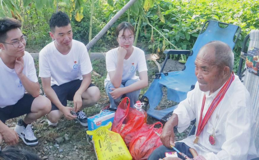 实践团队成员首先走访慰问了参加过抗美援朝、淮海战役、渡江战役的96岁老党员陈全刚,为陈老送上粮油等生活用品,并聆听了他的入党经过和战斗故事。陈老回忆往昔峥嵘岁月,鼓励同学们听党话,跟党走。老党员的深情回忆让同学们深受感动与鼓舞,纷纷表示要学习践行“坚持真理、坚守理想,践行初心、担当使命,不怕牺牲、英勇斗争,对党忠诚、不负人民”的伟大建党精神,品味真理之甜,筑牢信仰之基,补足精神之钙,胸怀大志,以青春小我之力,创青春之中华。