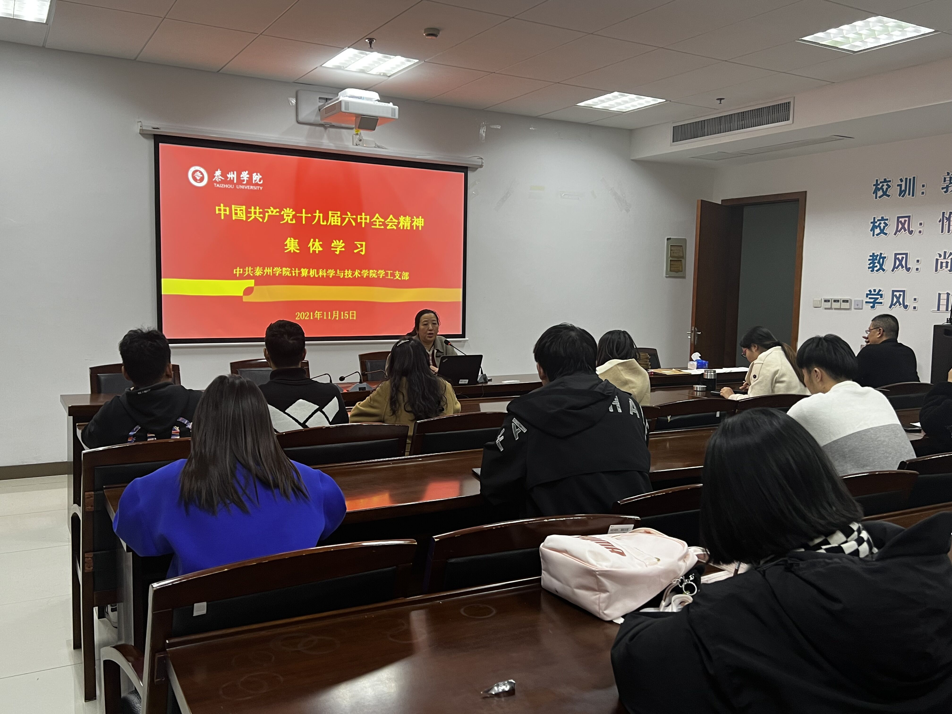 11月15日晚,计算机科学与技术学院学工党支部师生在会议室2307集中学习领会全会重要精神。大家一致认为,要深刻领会全会的精神实质和丰富内涵,坚定信心,奋勇前进,在新时代新征程上勇做坚定者、奋斗者、搏击者,以优异成绩迎接党的二十大召开,为实现第二个百年奋斗目标、实现中华民族伟大复兴的中国梦而不懈奋斗。