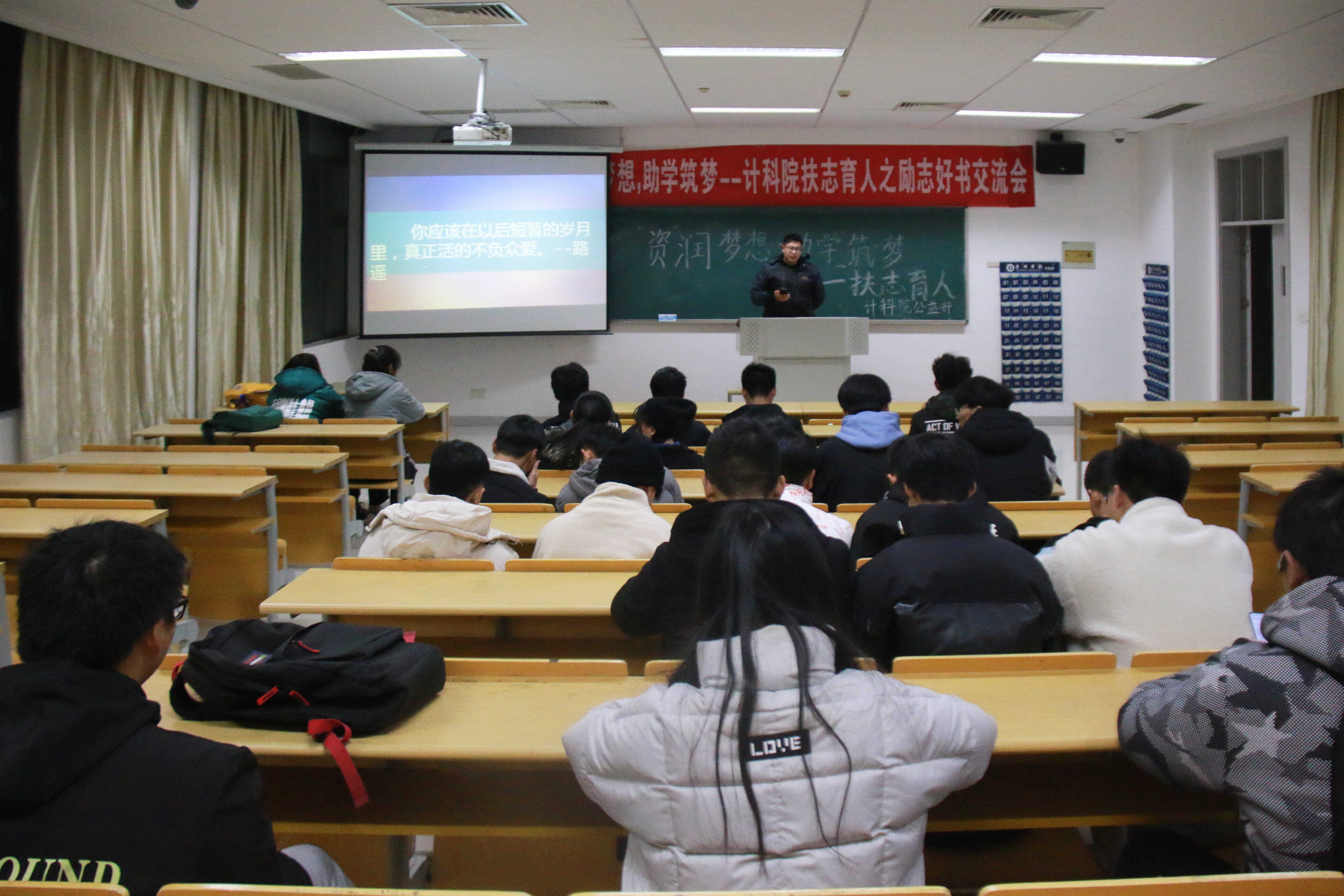 为培养老员工主人翁意识,做好感恩励志教育,强化资助育人实效。12月5日晚19:00,计科院在教学楼3407举办了“资”润梦想,助学筑梦——扶志育人之励志好书交流会。