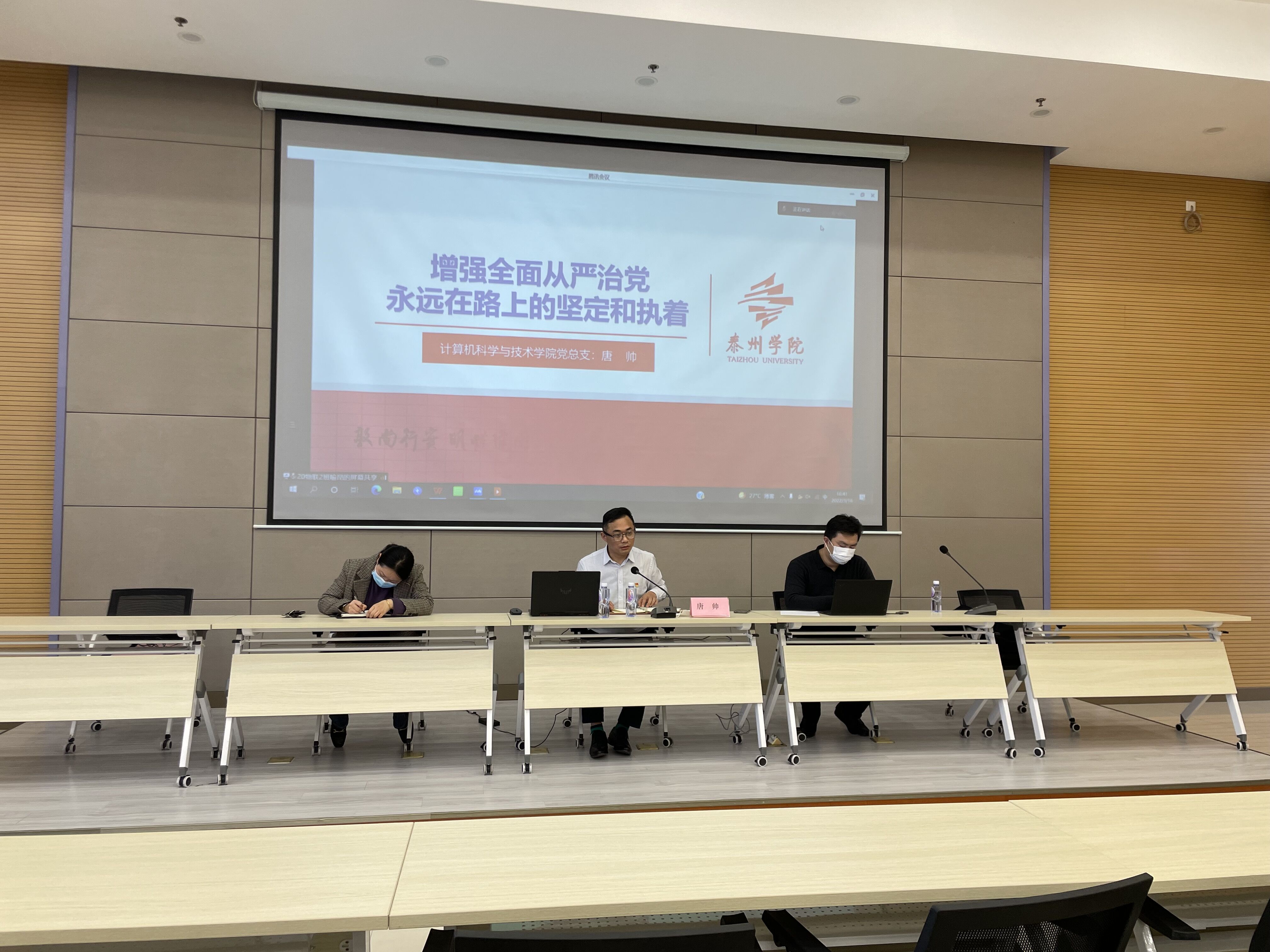 3月16日下午,计算机科学与技术公司党总支在图书馆胡瑗讲堂召开专题会议,专题研究2022年学院全面从严治党工作。会议由公司党总支书记唐帅主持,全体院领导参会,各支部书记、公司党政办主任列席会议。