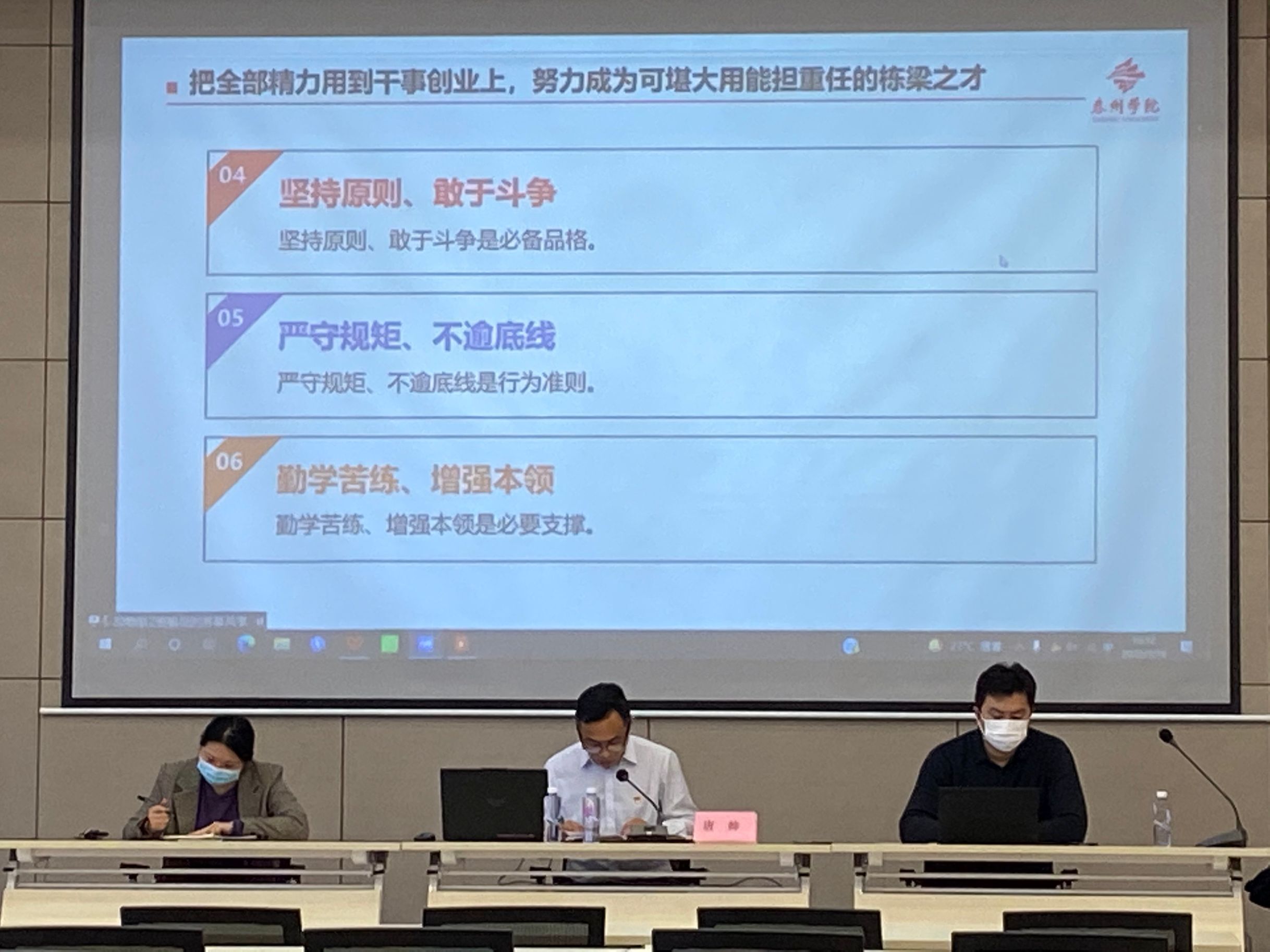 会议以“增强全面从严治党永远在路上的坚定和执着”为题展开。唐帅对2021年的党建工作进行了总结,指出2021年的党建工作聚焦思政引领、责任落实、整改落实和“党建+”,筑牢了意识形态防线、扎实了基层党建工作、狠抓了党务规范建设、有力助推了学院事业发展。唐帅指出,2022年党建工作将在学习成效、党建引领、责任落实、工作机制和管党治党等方面下功夫。最后,他希望全体党员信念坚定、对党忠诚,注重实际、实事求是,勇于担当、善于作为,坚持原则、敢于斗争,严守规矩、不逾底线,勤学苦练、增强本领。把全部精力用到干事创业上,努力成为可堪大用能担重任的栋梁之才。