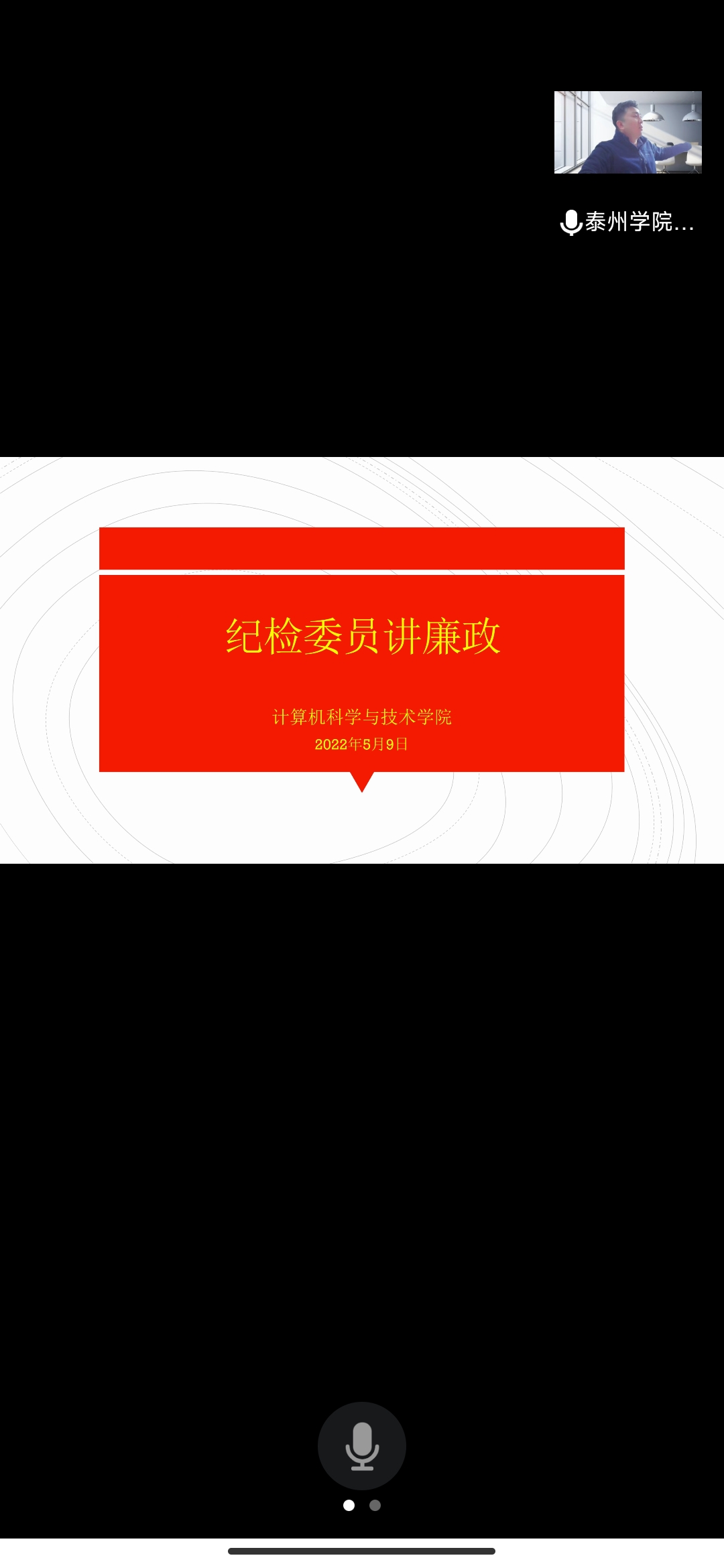 5月9日,计算机科学与技术学院副经理、党总支纪检委员钱进在线上上了一堂“纪检委员讲廉政”廉洁教育专题党课,强调了树立廉洁自律意识、自觉抵制不良风气、筑牢拒腐防变的思想防线的重要性。公司党总支成员和领导班子成员参加了会议。
