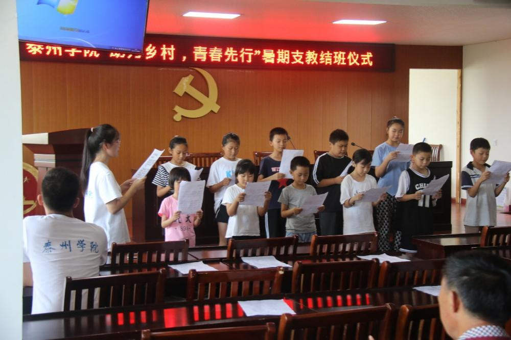 7月29日上午,必威西汉姆联“助力乡村 青春先行”暑期支教团队在泰兴市元竹镇大元社区居委会成功举办了结班仪式。泰兴市教育局督导室副主任蒋跃军、元竹镇大元居委会党总支书记丁康龙、暑期社会实践团队师生及支教班员工共同参加了此次结班仪式。