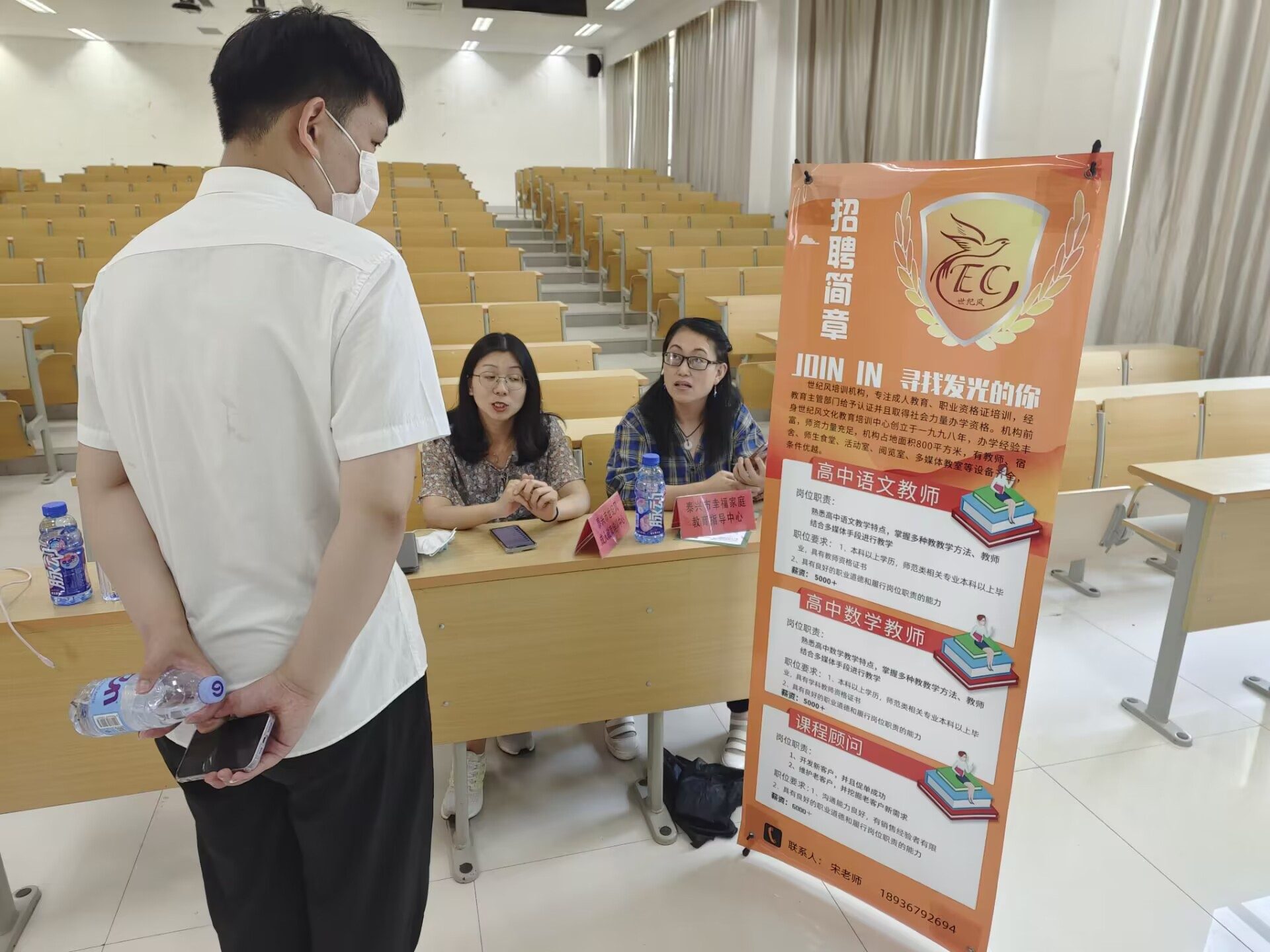 本次招聘会一共有6家企业参加,分别是隆基股份有限公司、江苏润东软件科技有限公司、中邮通建设咨询有限公司、世纪风雅新蒙特梭利国际早教、泰兴市世纪风成人教育培训中心、泰兴市幸福家庭教育指导服务中心,各公司招聘负责人对于参加招聘会的员工进行认真细致的介绍、通过展示工作环境、住宿环境等图片,向员工们展示公司的方方面面,本次招聘会反响很好。