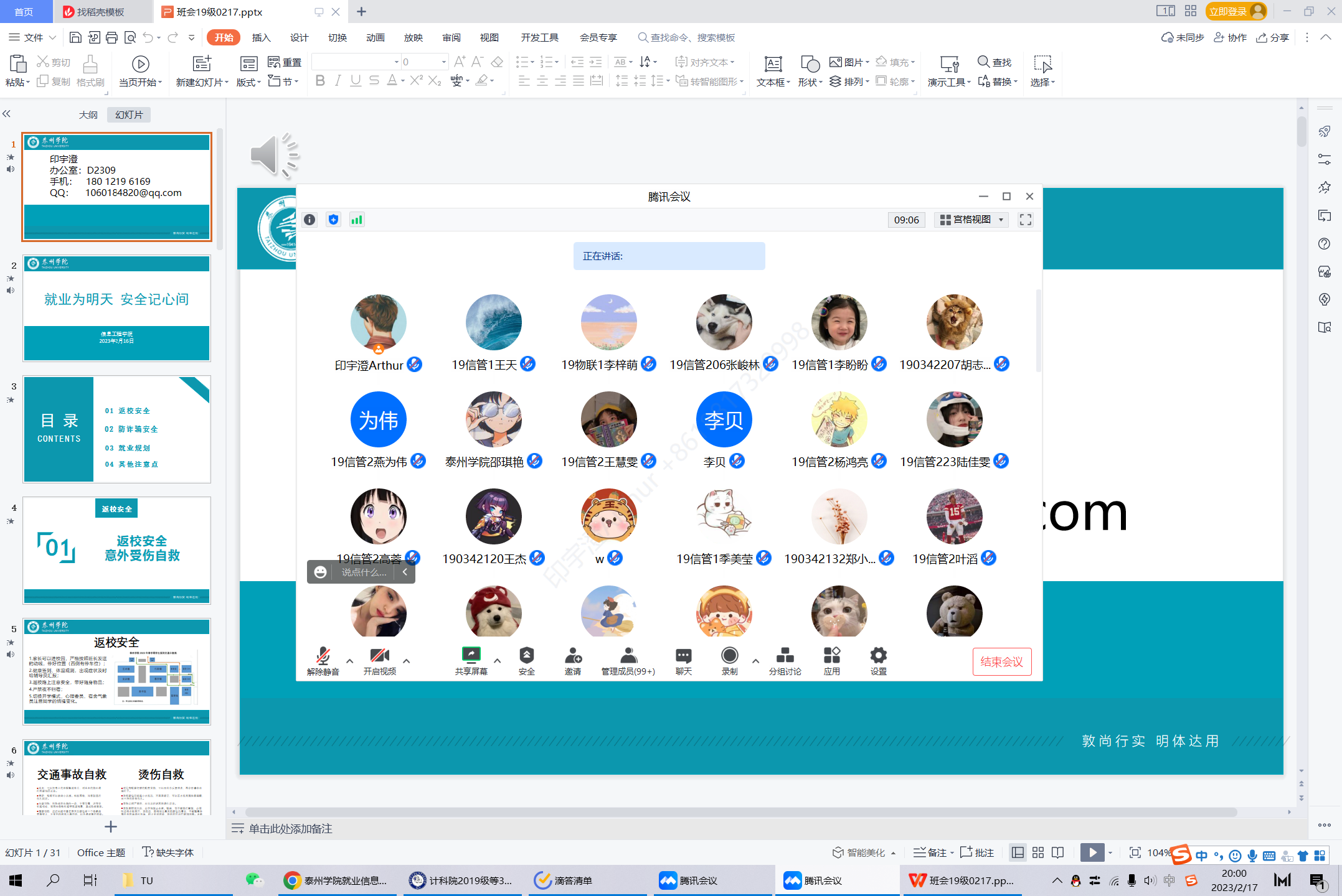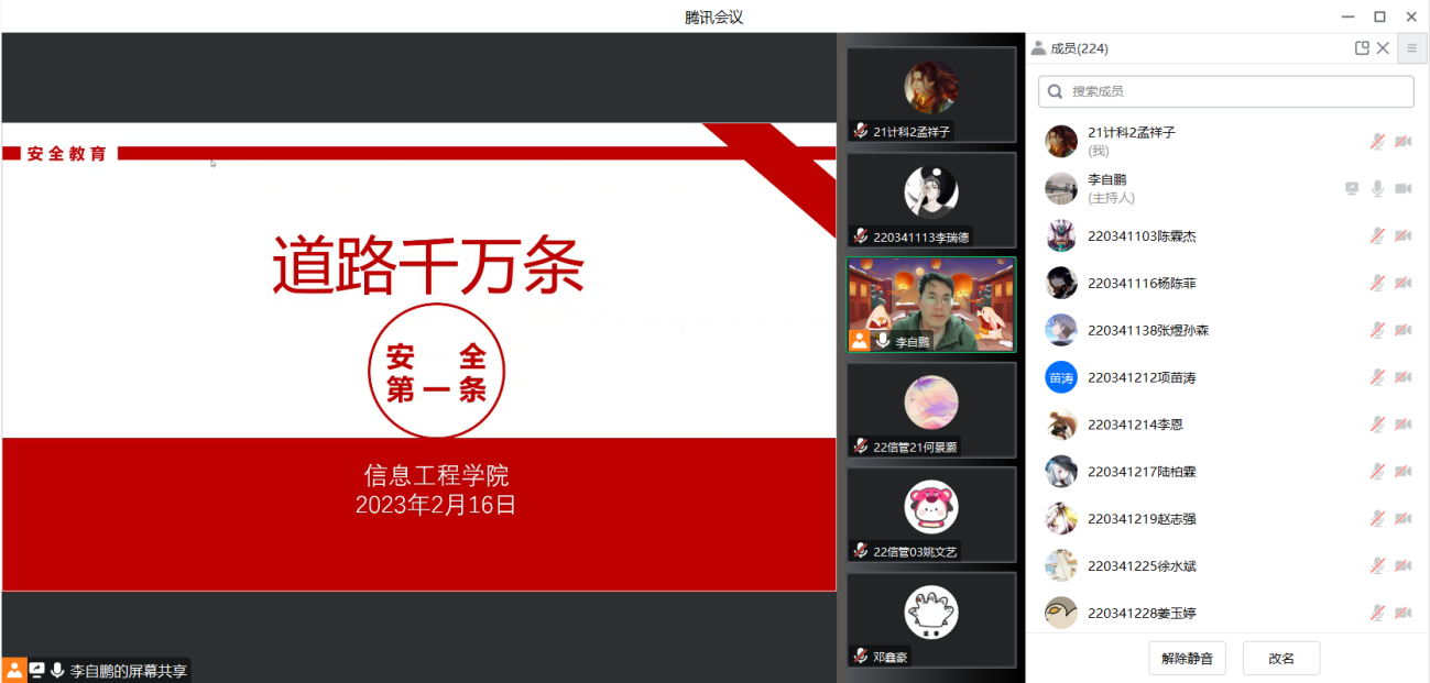 近日开学在即,为帮助同学们安全顺利地返校,提高防诈骗意识,更快地投入学习生活中,必威西汉姆联辅导员许红梅、朱敏浩、李自鹏和印宇澄老师分别于2023年2月16日在线上为各年级开展了“道路千万条,安全第一条”安全教育主题班会。
