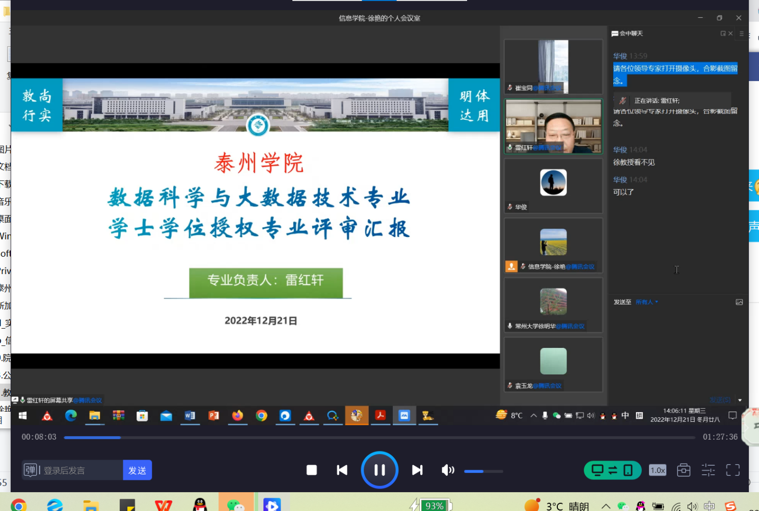 2022年12月21日,数据科学与大数据技术专业学士学位授权评审会线上举行。南京理工大学李千目教授任组长,江南大学刘渊教授、常州大学徐明华教授、扬州大学李斌教授和江苏海洋大学仲兆满教授为成员的评审专家组,对数据科学与大数据技术申请增列为学士学位授权专业进行评审。公司党委常委、副董事长沈荣鑫教授出席会议。