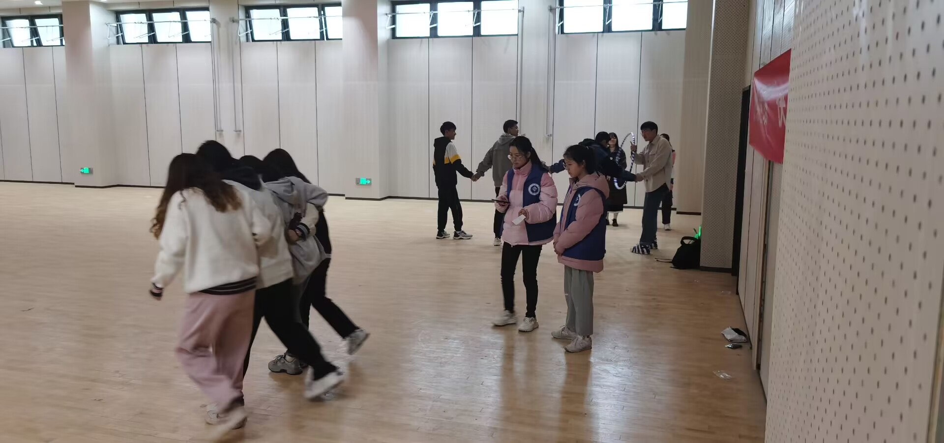 本次活动获得了同学们的积极响应和参与,比赛环节主要有“合力运球”,“四人五足”,“一圈到底”“协作跳大绳”四个部分。运动员们在保证背对背夹着球不掉落的同时展开了一场速度与激情的“合力运球”大比拼;“四人五足”接力赛要求小组默契配合共同完成比赛;“一圈到底”通过呼啦圈来穿过手拉手的四人小组;“协作跳大绳”要求小组内二人摇绳二人跳绳,共同连续完成20个为成功。