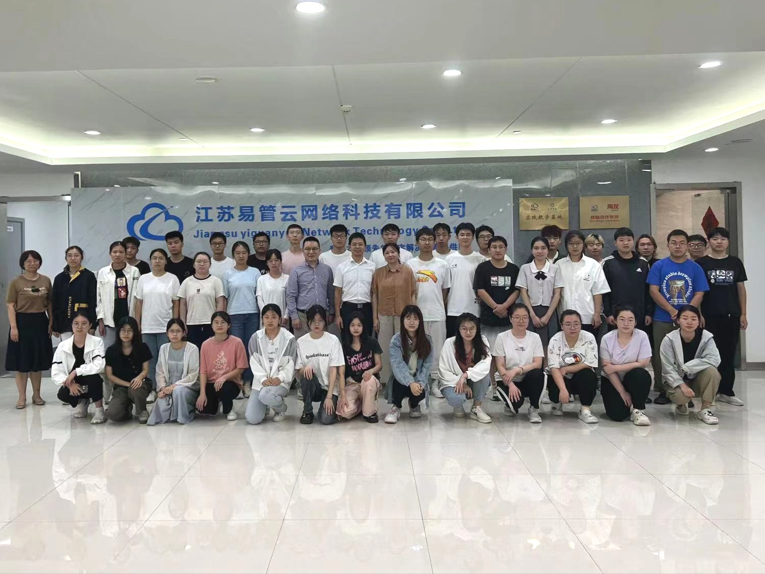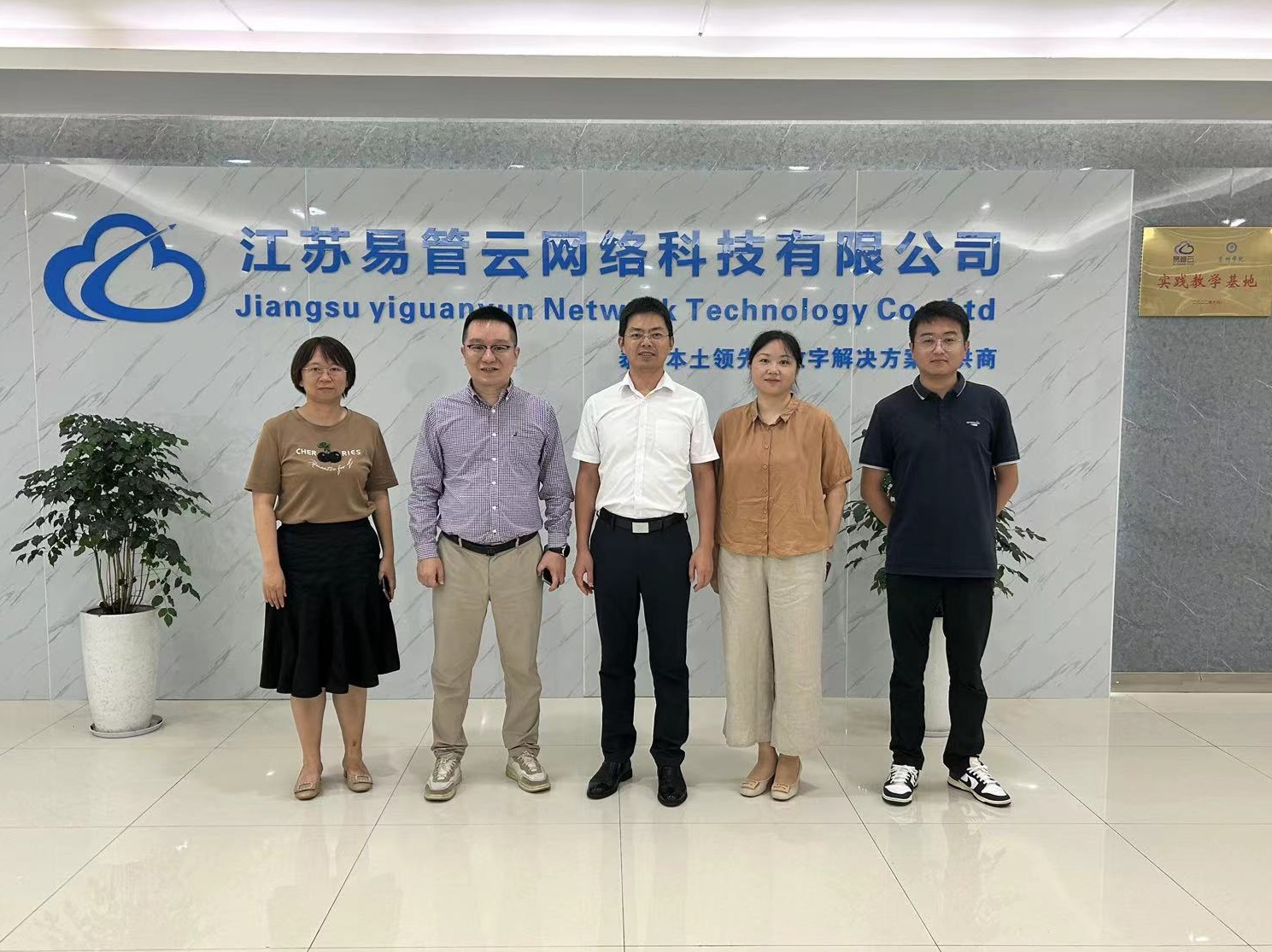 2023年8月29日上午,公司党总支书记朱诚、副书记徐姗姗以及副经理徐艳一行,赴学院实践教学基地——江苏易管云网络科技有限公司看望实习生,公司董事长姚勇接待学院领导一行。