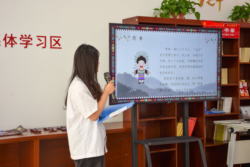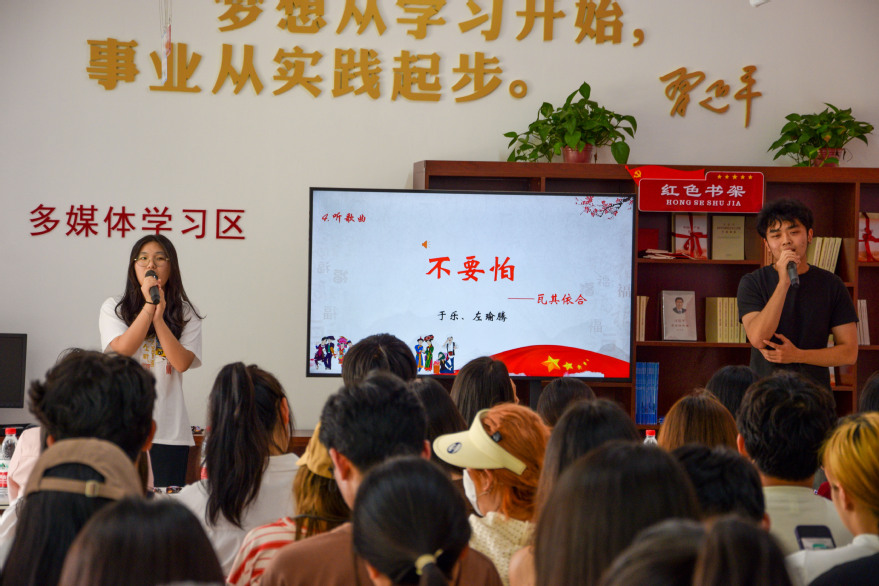 音乐环节,于乐、左瑜腾同学的歌曲《不要怕》让现场观众沉浸在民族的韵律与情感之中,问答环节的互动更让参与的员工深入了解了丰富的民族文化知识,姜柯、文紫薇、秦媛三位同学的民族介绍图文并茂。活动在王政、于乐同学深情演绎的《送别》中接近尾声。