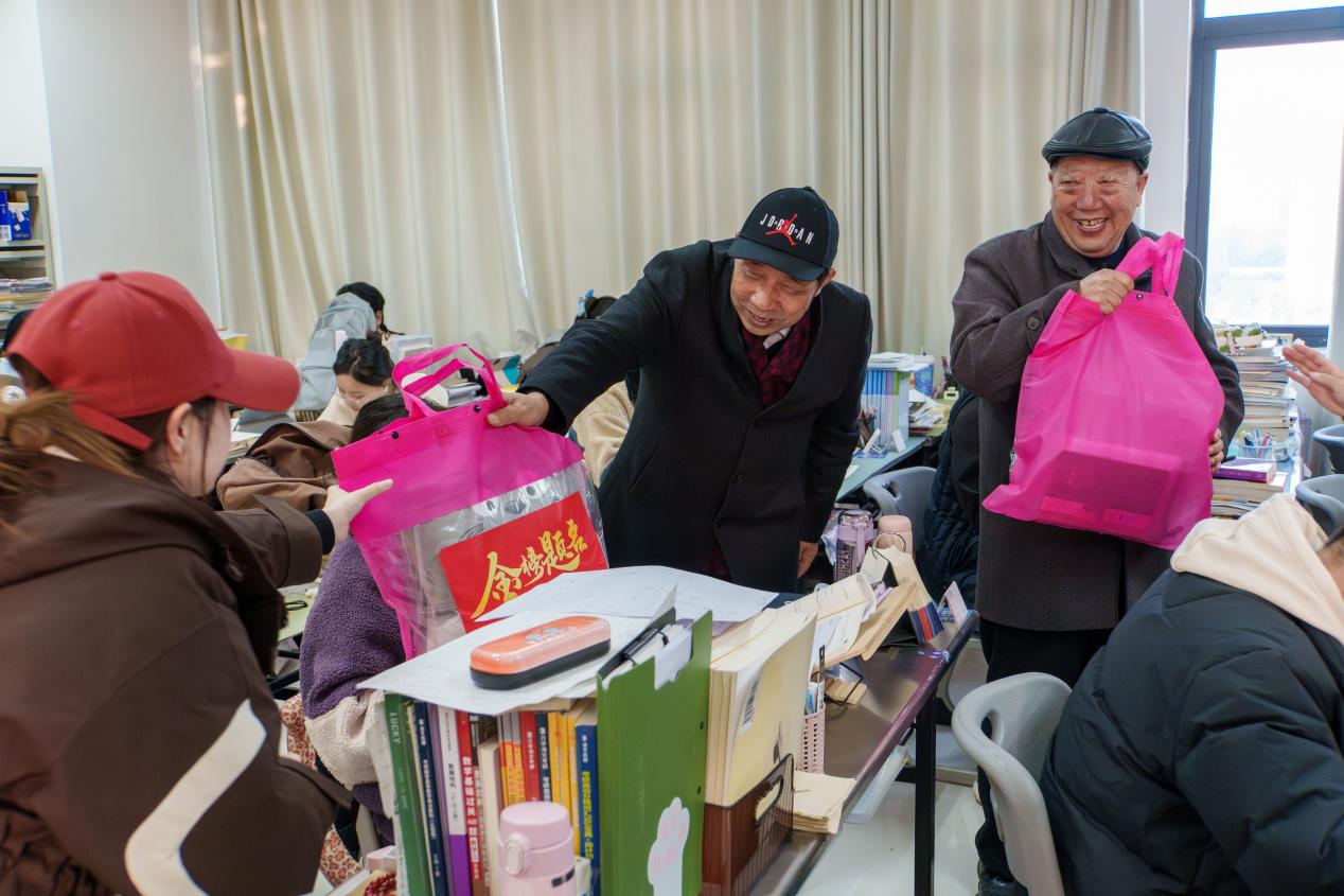 活动当天,徐金城和袁永谦两位老同志带着满满的关怀与祝福,走进了充满奋斗气息的考研教室,看望并慰问了正在紧张备考的2025届考研员工。他们为每位员工送上了“金榜题名”的祝福和精心准备的考研用品包,以实际行动助力学子减压增效,坚定考研信心。