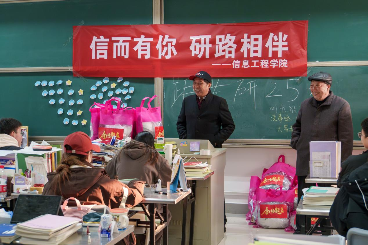 在慰问过程中,两位老同志与员工们亲切交谈,鼓励他们保持积极心态,合理安排复习时间,争取在即将到来的考研中取得优异成绩。随行辅导员也表示,将一如既往地关心和支持考研员工的学习和生活,为他们提供尽可能多的帮助和指导。