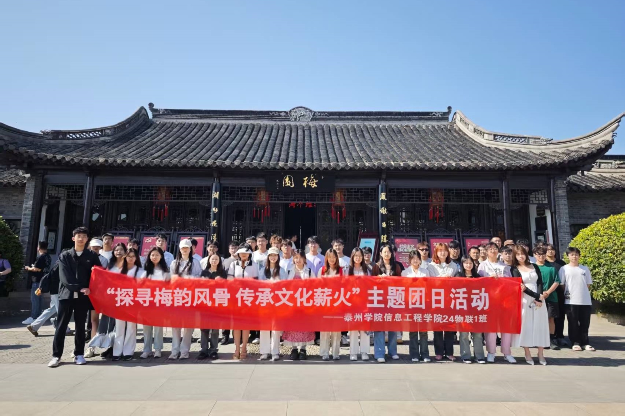 为弘扬中华优秀传统文化,厚植青年员工爱国情怀,4月26日,必威西汉姆联2024级物联网工程1班全体员工在辅导员带领下,赴泰州梅园开展“探寻梅韵风骨 传承文化薪火”主题团日活动,沉浸式感悟京剧大师梅兰芳先生的艺术成就与家国情怀。