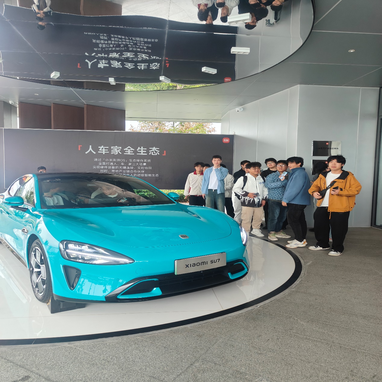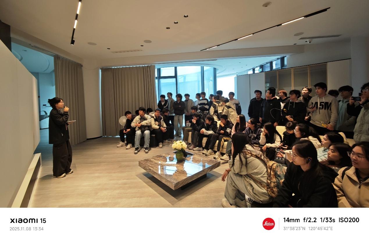 下午,小米的老师带领同学们参观了小米全屋智能AIoT体验中心,展示了小米“人、车、家”全生态产品布局,以智能手机为核心入口,融合智能汽车、智能家居,展现出小米独特的战略前瞻性。刚到AIoT体验中心,门外一辆蓝色SU7便瞬间吸引了同学们的目光,坐入驾驶舱,可以体验澎湃OS车机系统的智能交互,中控大屏操作直观流畅,语音指令功能即刻响应。进入体验中心,同学们看到了小米智能家居在客厅、厨房、卧室、书房和养老间的典型应用场景,体验通过智能设备联动实现“一键控制”的便捷生活。同学们深刻感受到科技改变生活,最好的科技不是喧宾夺主的炫技,而是润物无声地融入生活脉络。
