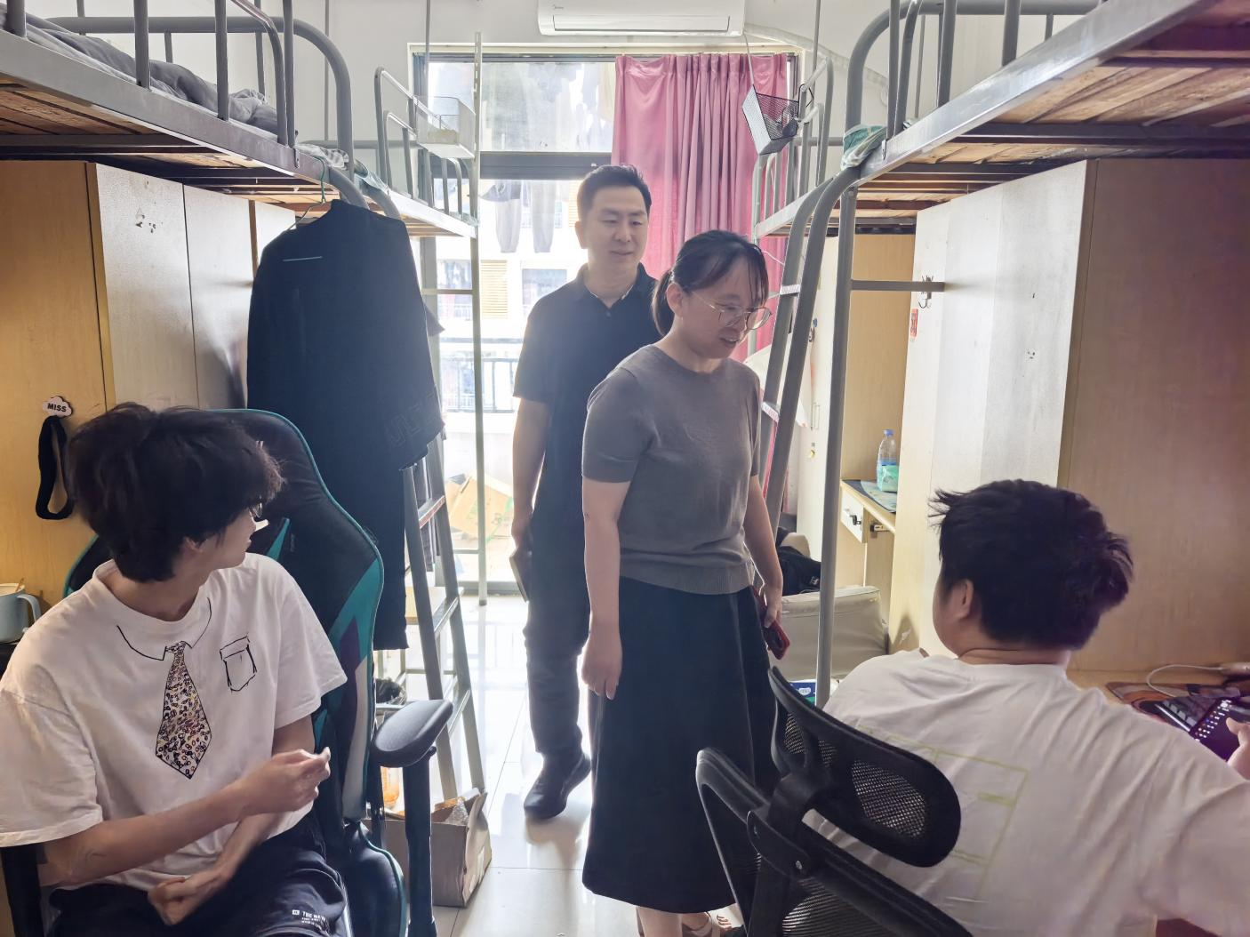 走访期间,学院领导、老师们走进一间间毕业生宿舍,与同学们进行亲切交谈。老师们细致询问每一位毕业生的毕业去向落实情况、就业进程、职业发展规划及目前面临的困惑与需求。对于已落实就业单位的同学,老师们表示祝贺,并鼓励他们在新的岗位上继续发扬学院优良传统,扎实工作,锐意创新。对于正在求职或备考的同学,老师们耐心分析当前就业形势与行业特点,提供个性化的指导建议,帮助同学们调整心态、明确方向,并现场对接相关就业资源与帮扶政策。